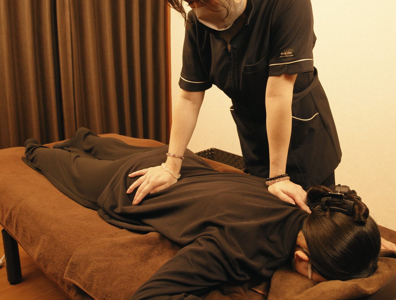当サロンの特徴は、漢方アロマ、全身筋膜ほぐし、内臓調整の3つ