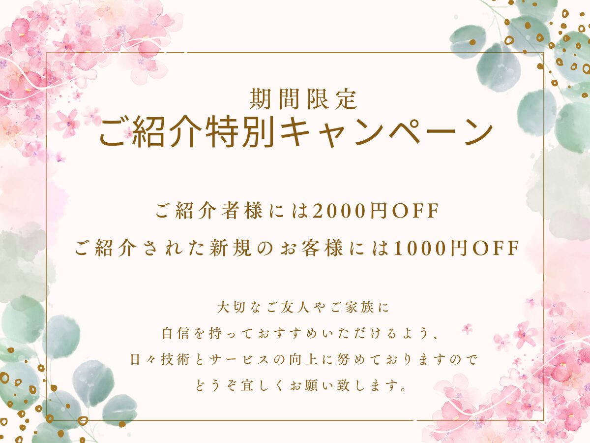 ご紹介者様にはご予約時の施術料金を2000円OFF
